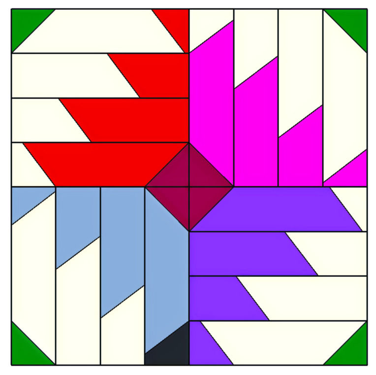 If you choose this method, the previous one-page four-block can still be varied. All that happened was to sew a small triangle into the diagonal corner of the finished block.