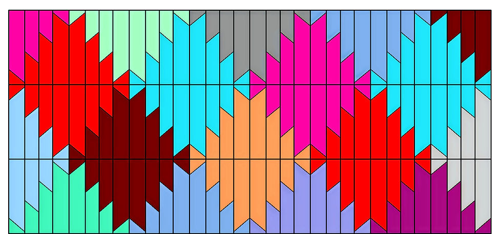 Kérdés, hogy mire jó ez? Pl. faliképhez, vagy sok ilyen blokkot variálva takarónak, de ha két elemet egymással szembefordítunk, akkor asztali futót kapunk.