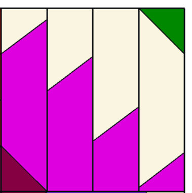 Minden blokkunkhoz varrjunk egy 5. csíkot hozzá. Ha ezt megtettük, akkor vágjuk akkorára, hogy négyzetet kapjunk. A színezőlapon döntsük el, hogy a háttérszínből varrunk e hozzá, vagy a "forgó minta" színéből (legszimpatikusabb megoldás).